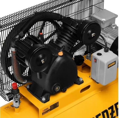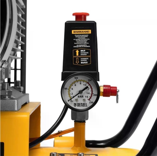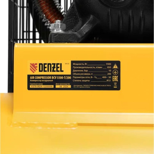 Компрессор поршневой DENZEL BCV 5500-T/200 воздушный рем. привод, мощностью 5,5 кВт и производительностью 850 л/мин, с ресивером объемом 200 л, — источник сжатого воздуха для работы с пневмогайковертом, пневмодрелью, краскопультом, углошлифовальной машиной или другим пневмоинструментом. Двигатель с медной обмоткой обеспечивает стабильную работу в течение длительного времени. Для подключения инструмента предусмотрено 2 быстросъемных коннектора Рапид (Евро) и штуцер «елочка» с краном. Специальный порт позволяет подключить напрямую дополнительный ресивер или пневмомагистраль. Компрессор отличается высокой производительностью и будет полезен на строительной площадке и станции техобслуживания