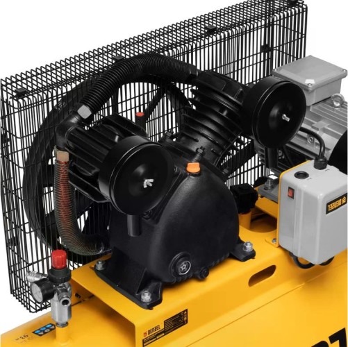 Компрессор поршневой DENZEL BCV 5500-T/270 воздушный рем. привод, мощностью 5,5 кВт и производительностью 850 л/мин, с ресивером объемом 270 л, — источник сжатого воздуха для работы с пневмогайковертом, пневмодрелью, краскопультом, углошлифовальной машиной или другим пневмоинструментом. Двигатель с медной обмоткой обеспечивает стабильную работу в течение длительного времени. Для подключения инструмента предусмотрено 2 быстросъемных коннектора Рапид (Евро) и штуцер «елочка» с краном. Специальный порт позволяет подключить напрямую дополнительный ресивер или пневмомагистраль. Компрессор отличается высокой производительностью и будет полезен на строительной площадке и станции техобслуживания.
