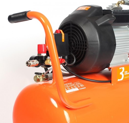 Конструкция компрессора включает прочный 50-литровый ресивер и эффективные системы охлаждения. Мощный двигатель подходит для работы с различным электроинструментом (пневматические гайковерты, шлифмашины, краскопульты), автомобильные работы (сборка, подкачка шин), а также покраски.