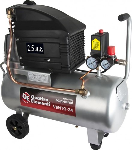 Серия Vento представлена двумя моделями - с 24 и 50-литровым ресивером. Мощный двигатель 2,5 л.с. Обеспечивает максимально возможную производительность для данного типа компрессоров. Эфективная смазочная система обеспечивает высокий ресурс. Компрессоры могут использоваться в домашних мастерских и автосервисах.