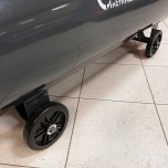 Для облегчения транспортировки внутри и снаружи помещений компрессор оснащён колёсами и двумя ручками на корпусе.