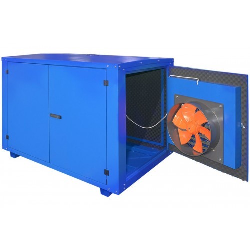 Шумозащитный кожух предназначен для защиты генератора от осадков, обеспечения безопасности работы и уменьшения уровня шума, исходящего от работающего генератора. Кожух изготавливается из стального листа толщиной 1,5-2 мм с порошковым покрытием и дополнительным шумозащитным покрытием. Для проведения технического обслуживания кожух имеет дверцы с удобным замком. Генераторную установку в шумопоглащающем кожухе можно эксплуатировать как в помещении, так и на улице при температуре окружающей среды от -25°С до +40°С.