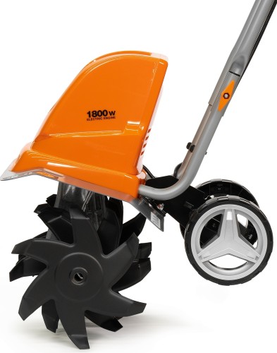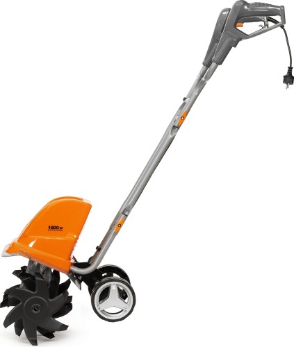 Электрический культиватор мощностью 1800 Вт в сочетании с системой из 24 ножей, расположенных на 6 фрезах, обеспечивает высокое качество обработки почвы. Отсутствие вредных выбросов позволяет использовать его в закрытых помещения, например теплицах.