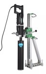 Установка алмазного бурения до диаметра 200 мм BYCON UNI-200DB (сухое/мокрое сверление) в комплекте со станиной. Рабочий ход каретки — 580 мм, регулируемый наклон сверления 0-45 град.