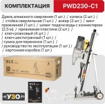 Машина алмазного бурения P.I.T. PWD 230-C1 ULTRA с наклонной стойкой предназначена для мокрого сверления алмазными коронками отверстий в бетоне, железобетоне, искусственном и природном камне, кирпичной и каменной кладке с подачей воды.