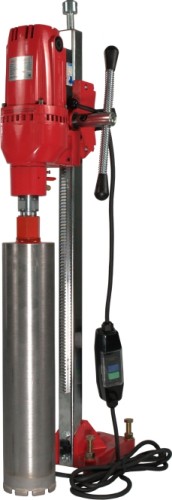 Алмазная сверлильная установка VOLL V-Drill 160 с мощным двигателем 3200 Вт предназначена для сверления отверстий в бетоне, железобетоне, включая железобетон с высокой степенью армированности, кирпичной и каменной кладке, граните, мраморе.