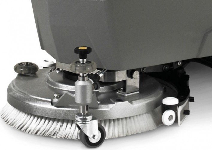 * Внешнее колесо позволяет регулировать давление прижима щетки, предохраняя двигатель от перегрузки на «сложных» поверхностях, таким образом FR 15 может работать без проблем в любом месте и на любой поверхности;