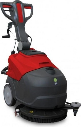 На поломойке установлена одна дисковая щетка диаметром 500 мм. Обороты щетки достигают 145 об/минуту, что обеспечивает качественную чистку поверхностей, а также придает машине движение, что создает удобство оператору - не нужно самому толкать машину. Взади расположена всасывающая балка с резиновыми губками (сквиджами), которая обеспечивает эффективную сушку полов за счет мощного двигателя всасывания (всасывающей турбины). Машина компактна, ручка регулируется под рост оператора, а также полностью складывается для удобства хранения. В комплект поставки входит все самое необходимое для того, чтобы сразу начать работу: дисковая щетка, всасывающая балка, аккумуляторы и зарядное устройство.