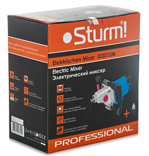 Миксер строительный сетевой STURM ID2015M подходит для приготовления различных строительных смесей. Небольшой вес обеспечивает удобство при выполнении работ.