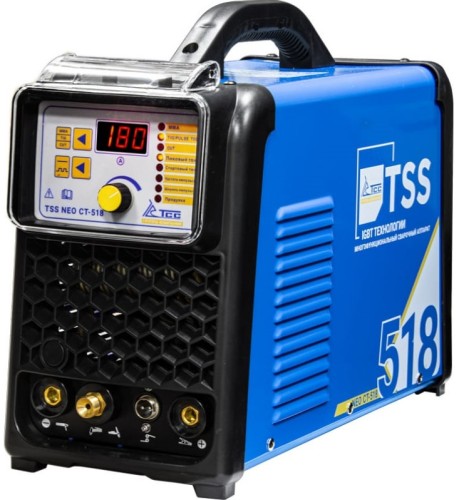 Многофункциональный сварочный аппарат инверторного типа TSS NEO CT-518 предназначен для ручной дуговой сварки (MMA), аргонодуговой сварки (TIG) и воздушно-плазменной резки (CUT)