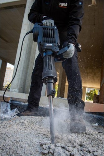 Отбойный молоток HDM1042P от промышленной линейки FERM используется для тяжелых демонтажных работ.
