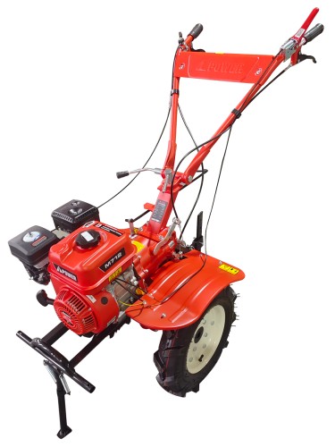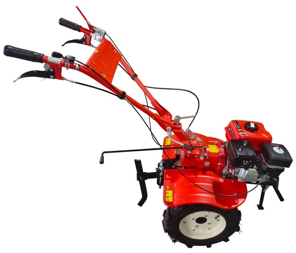 Мотоблок оснащен двумя большими пневматическими колесами с глубокими протекторами, обеспечивающими отличную сцепку с землей. Техника отличается широкой функциональностью и оснащена креплением для навесного оборудования, выполняющего покос травы, возделывание почвы, уборку снега и др.