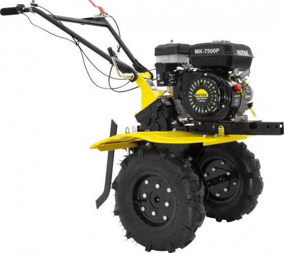 Сельскохозяйственная машина HUTER MK-7500Р предназначена для обработки средних и крупных участков земли. С её помощью можно взрыхлить или выровнять грунт перед началом сезонных работ. Культиватор оснащен четырехтактным двигателем внутреннего сгорания мощностью 7,5 л.с. с автоматическим регулятором частоты вращения, что упрощает работу с агрегатом. Сельскохозяйственная машина HUTER MK-7500Р имеет ременной привод активной навески. Мотоблок имеет 3 передачи: 2 вперёд и 1 назад. Ширина обработки почвы зависит от размеров лезвий и в базовой комплектации составляет 100 см. Если необходимо, возможна обработка узких полос земли. Для этого нужно отсоединить составные части фрез. Диаметр фрез - 30 см., регулировать глубину обработки можно с помощью сошника. Поскольку оператор всегда следует за ней во время работы, управление агрегатом полностью ручное. Благодаря большому объёму топливного бака (3,6 л), машина может долго работать без дозаправки. Расход топлива 375 гр/кВт в час.