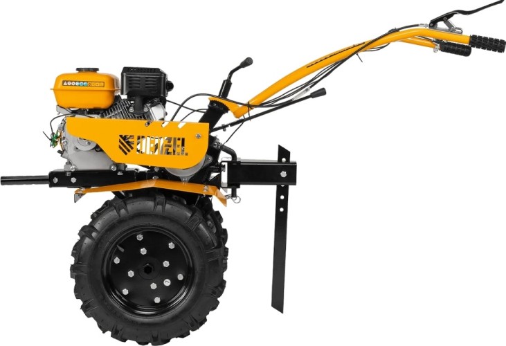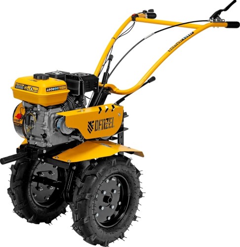 Мотоблок DENZEL DPT-270S 7 л.с., ременным механизмом сцепления, фрезами 3 х 4, шкивом отбора мощности (ШОМ) и коробкой передач 2В/1Н предназначен для проведения сельскохозяйственных работ. Максимальная ширина обработки составляет 1000 мм. Фрезы собираются из двух двойных и двух одинарных секций, что позволяет регулировать ширину вспашки. ;Шкив отбора мощности и универсальный кронштейн диаметром 30 мм позволяют установить различное навесное оборудование: плуг, окучник, картофелевыкапыватель, а также грунтозацепы и удлинители осей. Совместимые артикулы: Denzel 59901, 59902, 59903, 59904, 59905, 59906, 59907, 59908. Такое решение значительно расширяет возможности мотоблока и позволяет минимизировать расходы на закупку сельскохозяйственной техники.