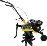 Сельскохозяйственная машина HUTER MK-7000PC – позволяет быстро и качественно культивировать почву, окучивать, рыхлить, выравнивать. А с помощью навесного оборудования выполнять и дополнительные работы по сенокошению, ворошению, уборке снега. Машина подойдет для обработки средних по величине участков. Четырехтактный двигатель мощностью 7 л.с. имеет автоматический регулятор частоты вращения. Тип привода активной навески: ременной. Производитель предусмотрел контроль уровня масла в картере. Мотоплуг имеет ширину обработки 1 м. Изменение количества фрез дает возможность использовать мотоплуг на рядках меньшей ширины. Диаметр фрез составляет 30 см. Глубину обработки можно отрегулировать с помощью сошника. Наличие двух передач вперед, позволяет выбрать оптимальный режим вспашки, а режим заднего хода увеличивает маневренность машины. Все управление сосредоточено на рукоятке. Переднее колесо облегчает передвижение и служит опорой при стоянке и хранении. Съемные крылья надежно защищают оператора и двигатель от земли. HUTER MK-7000PC работает от бензина АИ-92, топливный бак объемом 3,6 литра. Расход топлива: 375 гр/кВт в час. В отличие от модели HUTER MK-7000Р поставляется без колес.