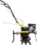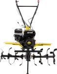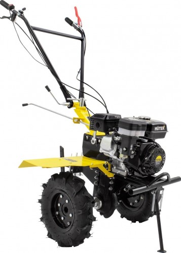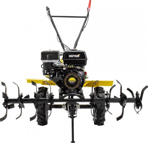 Сельскохозяйственная машина HUTER МК-8000P/135 предназначена для вспашки и боронования земель методом культивации без переворота. Основное достоинство этой модели — большая ширина захвата при обработке почвы: 115 см и мощный бензиновый двигатель (8 л.с.). Воздушное охлаждение не дает мотору перегреться, а датчик масла защищает от повреждения. Машина мощная и манёвренная. Задняя передача позволяет легко извлекать фрезы из почвы. Закаленная фреза диаметром 32 мм состоит из нескольких секций, поэтому возможно уменьшение ширины обработки. Предусмотрена работа с активным навесным оборудованием, например, с роторными косилками и ворошилками, подключаемыми через ВОМ 18 мм. Установлен шестеренчатый редуктор в масляной ванне в чугунном корпусе. Мотоблок работает на бензине (АИ-92), топливный бак имеет объем 3,6 л. Расход топлива составляет 375 гр/кВт в час.