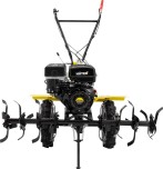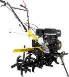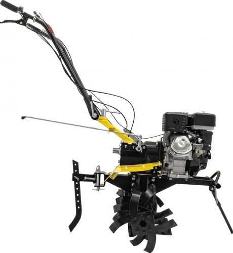 Сельскохозяйственная машина HUTER MK-9500P-10 — помощник для небольшого фермерского, садоводческого хозяйства. Позволяет механизировать большой список работ: вспахивание, рыхление почвы, культивация, нарезка канавок. Ширина обработки почвы - до 115 см. HUTER MK-9500P-10 - это модификация MK-9500P, которая отличается от базовой версии колесами увеличенного диаметра. Мотоблок приводится в действие бензиновым четырехтактным двигателем мощностью 9,5 л. с. Две передачи вперед и одна назад. Машина легко справляется с обработкой разных типов грунтов, в том числе тяжелых почв, подходит для вспахивания целины. В комплекте поставляется разборная фреза диаметром 32 см, которая может использоваться для культивации, выравнивания борозд, полноценного вспахивания методом рыхления (перебивания) грунта. Возможна установка дополнительной оснастки: окучника, картофелекопалки, плуга. Вал отбора мощности позволяет подключить помпу, косилку, генератор, другое активное навесное оборудование. Достоинства: есть возможность подсоединить прицеп и использовать для транспортировки грузов; ось передачи для крепления колес, фрез с шестигранным профилем 32 мм - выдерживает более высокие нагрузки по сравнению с круглыми осями; удобна регулировка глубины обработки почвы с помощью сошника; принудительное воздушное охлаждение позволяет работать продолжительное время без перерыва; продуманная конструкция: шестеренчатый редуктор в масляной ванне, система защиты от масляного голодания мотора - все это обеспечивает длительную и безопасную эксплуатацию мотоблока; разборная фреза - можно регулировать ширину обработки грунта, добавляя или убавляя секции.