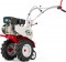 При скорости вращения вала 36 об/мин мотоблок движется со скоростью 3 км/ч. На такой низкой скорости движения за 1 метр навесное оборудование совершает больше циклов работы, это помогает оператору мотоблока убирать участок со 100% эффективностью. Оптимальной скоростью для работы на фрезах является скорость в диапазоне 80-120 об/мин. Если вращение будет выше значения в 120 об/мин, то фрезы из активного навесного оборудования превращаются в пассивное и будут не рыхлить, а просто перемещаться по грунту. Если же обороты будут ниже 80 об/мин, то фрезам не хватает тягового усилия и культиватор не будет двигаться вперед. Корпус редуктора – алюминиевый, что говорит о его принадлежности к профессиональному классу. На корпусе имеются ребра жесткости. Редуктор полностью разборный и обслуживаемый, при этом в нем не требуется замена масла, а только периодическое доливание при необходимости. Везде используются подшипники и, что очень важно, выполнена расточка корпуса. Опоры вала разнесены на оптимальное расстояние. Все шестерни и валы закалены. Цепь, которая установленна внутри трансмиссии, выдерживает усилие на разрыв в 3,2 т. В первые в трансмиссиях на мотоблоках произведена затыловка шестеренок и переключение передач происходит крайне мягко и точно, забудьте о том, чтобы ловить нужную передачу или переключать передачи ногой.Расположение колес сзади позволяет распределить всю массу мотокультиватора на колеса и перемещать его без нагрузки на руки и спину в отличии от того, когда колеса расположены спереди. Чтобы начать работать и обрабатывать землю, нужно всего лишь перевернуть сошник на 180 градусов. Ножи закаляются токами высокой частоты и во время работы сами затачиваются в земле, их не нужно обслуживать в течение всего срока эксплуатации. Закаленный нож не боится попадания камней и веток, что делает его долговечным.Руль крепится не к раме мотокультиватора, а к самому редуктору; на мотокультиватор устанавливаются профессиональные органы управления от лидера мирового рынка из Италии – START, которые максимально надежны и «гасят» вибрации на руки оператора благодаря специальным антивибрационным вставкам более чем на 50%. У этой ручки сцепления меняется плечо и когда вы держите сцепление нажатым, нагрузки на запястье практически нет.Регулировка в горизонтальной плоскости позволяет идти рядом с обрабатываемой землей и не затаптывать ее, а также работать вплотную к ограждениям или сооружениям с косилкой, щеткой или снегоуборщиком.