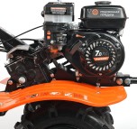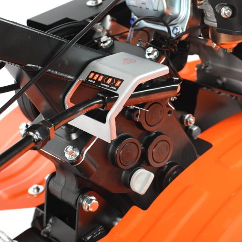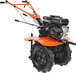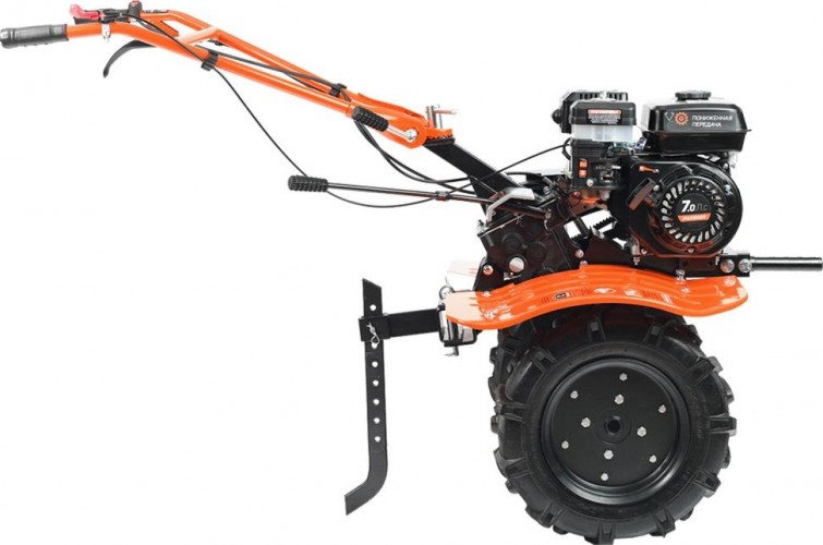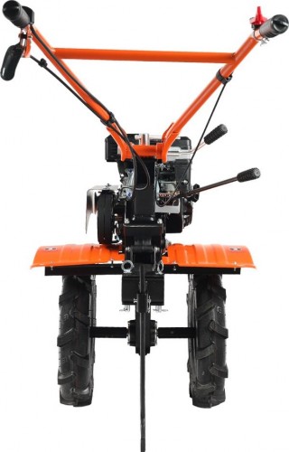 Кубань M - бензиновый мотоблок с пониженной передачей и чугунным цепным редуктором. Четырехтактный двигатель с воздушным охлаждением способствует продолжительной работе. 3-х ступенчатая трансмиссия позволяет подобрать оптимальный режим, первая пониженная передача улучшает проходимость мотоблока и облегчает вспашку твердых слоев грунта. Укрепленная рама с универсальной сцепкой позволяет установить навесное оборудование или использовать вместе с тележкой. В комплектации закаленные фрезы, пневматические колеса с глубоким профилем протектора, сошник. Кнопка включения, рукоятка газа и рычаг привода расположены на руле. Наклон руля регулируется.