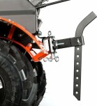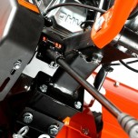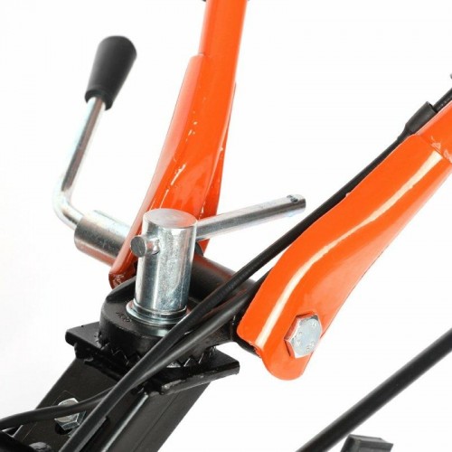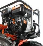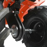 Урал - бензиновый мотоблок с 4-х тактным двигателем повышенного ресурса и цельнолитым чугунным цепным редуктором. Конструкция рамы облегчает транспортировку мотоблока и защищает двигатель, глушитель и бензобак. 4-х ступенчатая коробка передач. Перекидывание ремня между проточками трехручейкового шкива включает пониженную передачу. На сцепку устанавливается навесное оборудование или тележка. В комплекте закаленные фрезы, широкие колеса Extreme с глубоким протектором, сошник. Кнопка включения, рукоятка газа и рычаг привода расположены на руле. Наклон руля регулируется.