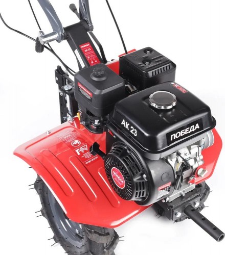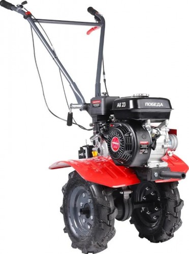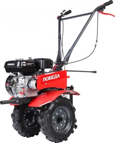 Универсальный мотоблок Победа предназначен для выполнения различных работ по рыхления и культивации почвы на приусадебных участках. Мотоблок оснащен мощным 4-х тактным бензиновым двигателем и надежной многоступенчатой трансмиссией - шестеренчато-цепным редуктором в алюминиевом корпусе. Установка различного навесного оборудования значительно расширяет применение мотоблока от уборки снега и листвы, обработки почвы до перевозки грузов. Большие пневматические колеса гарантируют отличную проходимость.