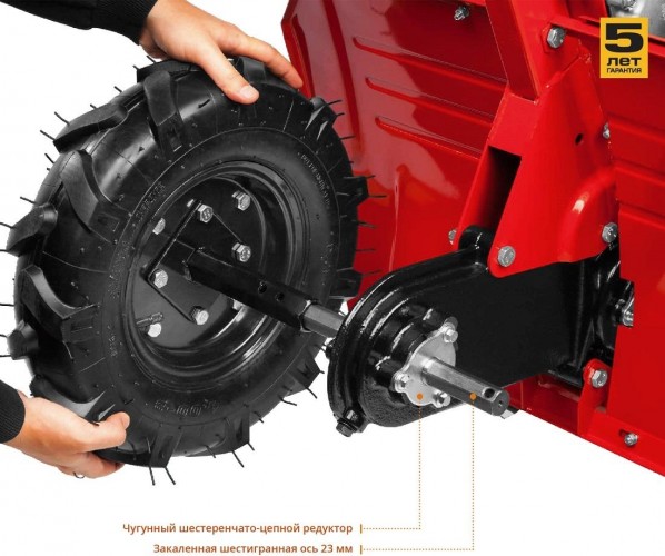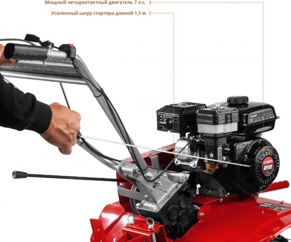 Надёжный и манёвренный мотоблок для рыхления и культивации почвы на приусадебном участке. Эффективный двигатель с воздушным фильтром в масляной ванне увеличивает моторесурс. Складываемые, регулируемые по положению рукоятки и транспортное колесо облегчают эксплуатацию, транспортировку и хранение.