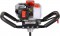 Конструкция мотобура состоит из двигателя с топливным баком, укрепленных на раме. К ней прикрепляются ручки, с помощью которых удобно держать агрегат в любом положении. Двигатель через редуктор соединяется с выходным валом для крепления шнеков. С буром могут использоваться различные стандартные шнеки до 300 мм. При необходимости бурения глубоких лунок со шнеком может применяться удлинитель 1000 мм.