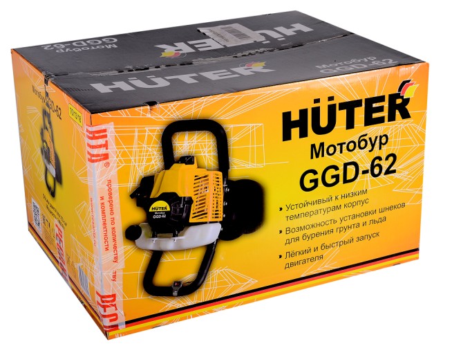 Мотобур Huter GGD-62 подходит для бурения отверстий в земле, это удобный инструмент для работы с грунтом и льдом. Благодаря сменным шнекам они позволяют получить отверстия разных диаметров. Бензобур находит применение в строительстве, коммунальном хозяйстве, на дачных участках или зимней рыбалке.