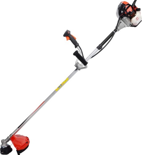 Двухтактный бензиновый двигатель на триммере с топливным баком 0,7 литра. Объем двигателя у данной модели 42,7 кубических сантиметра при мощности 1,25 кВт. Мощный двигатель позволяет эффективно справляться с большим объемом работ и обрабатывать крупные участки