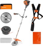 Бензиновая коса DAEWOO DABC 4ST оснащена системой уменьшения вибрации и шума. Укомплектована режущими инструментами: диском 40 зубьев и полуавтоматической шпулькой. Защитный кожух изготовлен из качественного ударопрочного ABS-пластика.