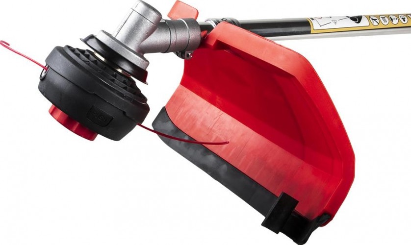 Защитный кожух снабжен отрезным ножом для подрезания лески.