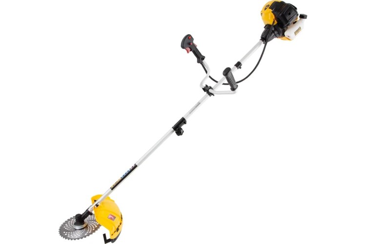 Бензиновый триммер Denzel DTL-33S 96262 с разъемной штангой, состоящей из 2 частей, оснащен 2-тактным двигателем объемом 33 см3. Предназначен для стрижки газона, скашивания травы всех типов, в том числе с жесткими древовидными стеблями (полыни, крапивы, лебеды, борщевика), а также срезания кустарника и молодых побегов деревьев с диаметром стволов до 10 мм. Усиленная катушка с леской и пильный диск, вращающиеся со скоростью 9500 об/мин, обеспечивают ширину скашивания 42 и 25,5 см. Инструмент не требует подключения к электросети, поэтому подходит для работы с влажной травой и может использоваться на отдаленных от дома участках.