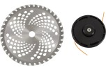 Бензиновый триммер Denzel DTL-43 96263 с двигателем объемом 43 см3, имеет неразъемную штангу и поставляется комплектом из 2 частей. Предназначен для скашивания травы всех типов, в том числе с жесткими древовидными стеблями (полыни, крапивы, лебеды, борщевика), а также срезания кустарника и молодых побегов деревьев с диаметром стволов до 10 мм. Двигатель мощностью 2,5 л.с. обеспечивает скорость вращения насадок 9500 об/мин. В комплект входят 2 оснастки: катушка с леской (обеспечивает ширину скашивания 42 см) и остро заточенный пильный диск (25,5 см). Триммер не зависит от наличия электросети, поэтому его можно использовать вдали от дома. Эргономичная конструкция обеспечивает маневренность даже на труднодоступных участках.