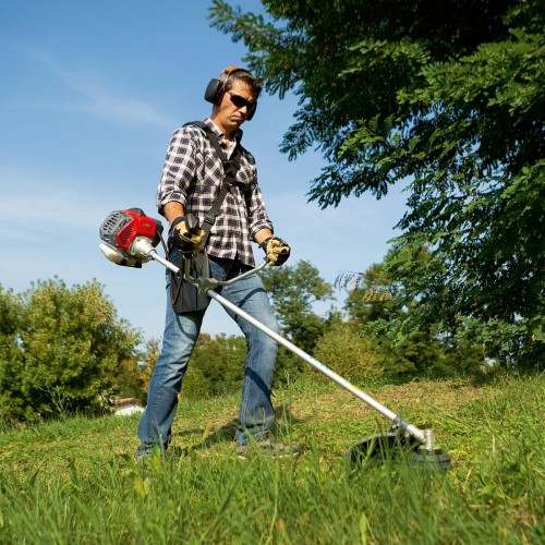 Эргономичная рукоятка велосипедного типа обеспечивает оператору комфортную работу с триммером. Мотокоса бензиновая EFCO DSH 400T ES оснащена режущей головкой Tap&Go EVO (130 мм) с леской 2,4 и диском (3 зуба) диаметром 255 мм, которые обеспечивают идеальный срез.