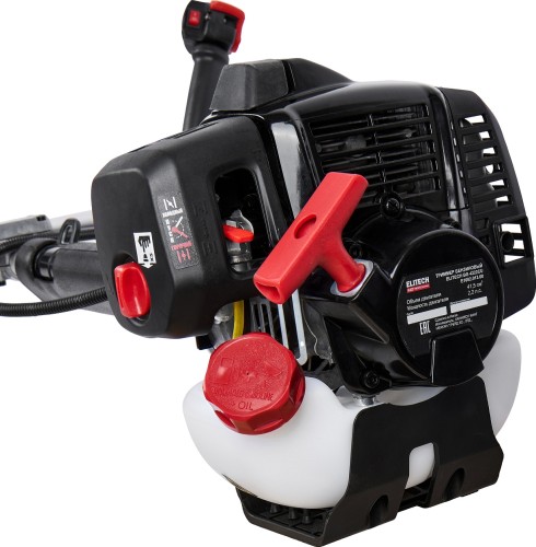 Триммер бензиновый ELITECH BG 4222CU с 2-тактным двигателем мощностью 2,2 л.с. с полуавтоматической головкой для лески, используется для кошения, в том числе и переросшей травы на пересечённой местности, как на приусадебных и придомовых территориях, так и для использования специалистами служб благоустройства и озеленения в коммерческих целях.