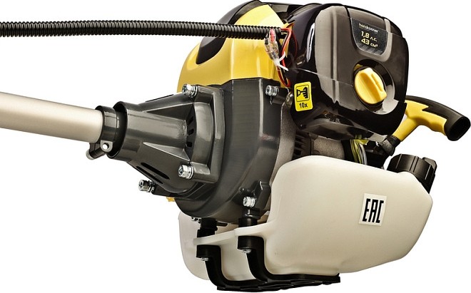 Триммер кусторез HBT43F - незаменимый помощник на садовом участке. Имеет мощный 2-х тактный двигатель объемом 43см3, что позволяет без проблем скашивать не только высокую сухую траву, но и молодую поросль кустарника.