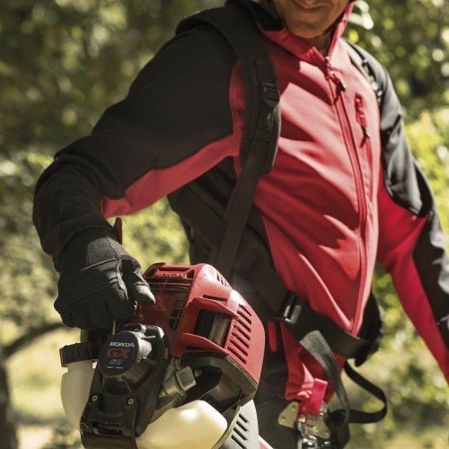 Триммер бензиновый Honda UMK 450 E XEET – это мощная профессиональная модель с надежным двигателем рабочим объемом 47,9 куб. см. Двигатель 4-тактный, 1-цилиндровый, с верхним распределительным валом и принудительным воздушным охлаждением. Четырехтактные бензиновые мотокосы Honda заслужили отменную репутацию за легкость запуска. Новый оптимизированный декомпрессор, встроенный в мотор GX50, позволяет запустить триммер еще проще. Агрегат разработан инженерами компании Honda для многолетней эксплуатации при повышенных нагрузках. Двигатель способен выдавать мощность до 2 л.с. и достаточный крутящий момент для эффективной работы. Расход топлива четырехтактной косы до 20% ниже в сравнении с двухтактными моделями. Кроме того, UMK 450 работает на чистом бензине, что существенно экономит время, которое в двухтактных моделях тратится на предварительное смешивание топлива с маслом. Масло в двигателе меняется по стандартам Honda с интервалом в 50 часов работы. Ранцевая система переноски значительно облегчает работу оператора. Широкий диапазон настроек включает отдельную регулировку защитной подушки, которая позволяет пользователям любого роста и габаритов расположить мотокосу для работы, правильно распределив ее вес. В стандартную комплектацию входят кассета Tap & Go с нейлоновой леской, 3-лопастной нож и ранцевая система крепления косы. Кроме того, для профессиональных садовых работ в качестве опции доступен новый металлический нож диаметром 305 мм. Крупный диаметр режущего элемента позволяет существенно улучшить рабочие возможности бензокосы. Мотокоса предназначена для использования профессиональными пользователями и сотрудниками коммунальных служб для широкого диапазона целей – от сельского хозяйства, обслуживания дорог и парков до ухода за частной собственностью.