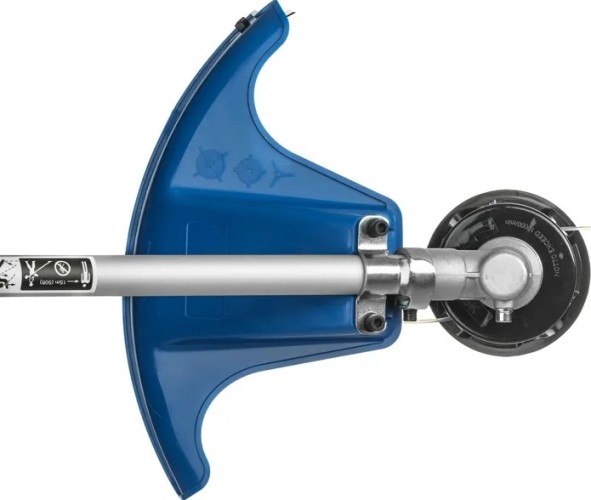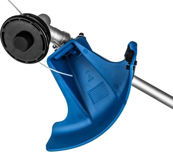 Мощность мотокосы составляет 1,22 л.с, что позволяет справляться не только с травой, но и с твердым сухостоем, кустарниковой порослью. Для кошения крупных сорняков и другой грубой растительности рекомендуется устанавливать на косу нож, который также есть в комплекте.