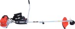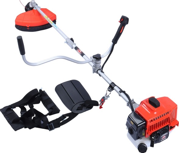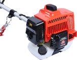 Бензиновый триммер SUNREKA GT43R построен на базе двигателя рабочим объемом 42,7 куб. см и разъемной штанги и разборным кованым стальным валом для передачи вращения на шпулю или режущий диск.Две штанги соединяются алюминиевым кронштейном со специальным фиксатором, который позволяет очень прочно фиксировать детали, обеспечивая жесткость конструкции в сборе на уровне жесткости неразборной штанги.Пластиковый корпус двигателя имеет новый оригинальный дизайн, который не только выделяется среди конкурентов на рынке, но и имеет улучшенные характеристики: пересмотрено и улучшено охлаждение цилиндра двигателя, а также кнопка праймера (насос предварительной подкачки топлива) установлена снаружи двигателя, а не внутри в глубине под крышкой, на карбюраторе, как предусматривает стандартная и наиболее распространенная конструкция. Крышка воздушного фильтра снимается легко, и фиксируется плотно. Фиксатор с возможностью настройки не только линейного, но и угловых положений рукоятки, позволяет настроить инструмент так, что бензиновым триммером SUNREKA GT43R удобно работать человеку любого роста и комплекции. Что является очень важным для работ даже невысокой продолжительности, от 10-15 минут.В качестве режущего инструмента можно использовать шпулю с леской, максимального диаметра Ø3 мм, а также режущие лезвия: 3х-лопасной нож и режущий диск с 40-ка наплавленными острыми ТВЕРДОСПЛАВНЫМИ ЗУБЬЯМИ, которые без проблем справятся даже с кустарниками и ветками толщиной несколько сантиметров.Бензиновый триммер SUNREKA GT43R это отличный помощник по уходу за участком, который может как дополнять газонокосилку, так и самостоятельно справляться с широким комплексом задач на дачном и садовом участках и других зонах озеленения.Бензиновый триммер SUNREKA GT43R отлично подойдет для работ средней и высокой интенсивности по газону и траве, для расчистки участка от сорняков, кустарников, для плотной травы, для дачных, придомовых и садовых участков. А также, для очистки труднодоступных участков, куда газонокосилка не может проехать.Так как бензиновый триммер SUNREKA GT43R имеет разборную штангу и вал, на быстросъемном алюминиевом кронштейне с фиксатором, его можно перевезти в багажнике автомобиля, что очень удобно!
