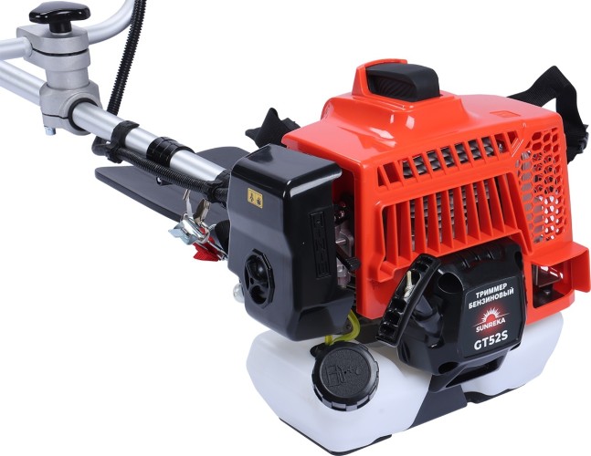 Бензиновый триммер SUNREKA GT52S построен на базе мощного двигателя рабочим объемом 52 куб. см и неразъемной штанги и цельным кованым стальным валом для передачи вращения на шпулю или режущий диск.Пластиковый корпус двигателя имеет новый оригинальный дизайн, который не только выделяется среди конкурентов на рынке, но и имеет улучшенные характеристики: пересмотрено и улучшено охлаждение цилиндра двигателя, а также кнопка праймера (насос предварительной подкачки топлива) установлена снаружи двигателя, а не внутри в глубине под крышкой, на карбюраторе, как предусматривает стандартная и наиболее распространенная конструкция. Крышка воздушного фильтра снимается легко, и фиксируется плотно.Фиксатор с возможностью настройки не только линейного, но и угловых положений рукоятки, позволяет настроить инструмент так, что бензиновым триммером SUNREKA GT52S удобно работать человеку любого роста и комплекции. Что является очень важным для работ даже невысокой продолжительности, от 10-15 минут.В качестве режущего инструмента можно использовать шпулю с леской, максимального диаметра Ø3 мм, а также режущие лезвия: 3х-лопасной нож и режущий диск с 40-ка наплавленными острыми ТВЕРДОСПЛАВНЫМИ ЗУБЬЯМИ, которые без проблем справятся даже с кустарниками и ветками толщиной несколько сантиметров.Бензиновый триммер SUNREKA GT52S это отличный помощник по уходу за участком, который может как дополнять газонокосилку, так и самостоятельно справляться с широким комплексом задач на дачном и садовом участках и других зонах озеленения. Бензиновый триммер SUNREKA GT52S отлично подойдет для работ высокой интенсивности по плотному газону и высокой траве, для расчистки участка от сорняков, кустарников, для дачных, придомовых и садовых участков. А также, для очистки труднодоступных участков, куда газонокосилка не может проехать.Мощный двигатель бензинового триммера SUNREKA GT52S позволяет максимально эффективно использовать режущие диски и лезвия без перегрузки.