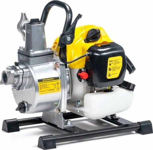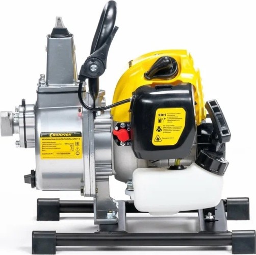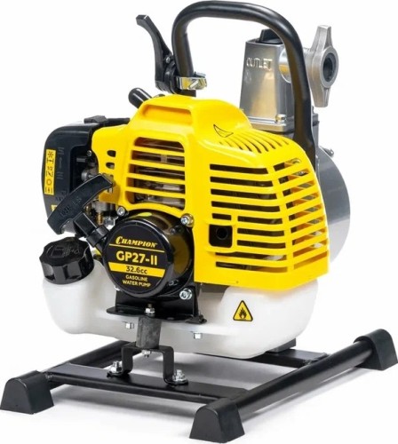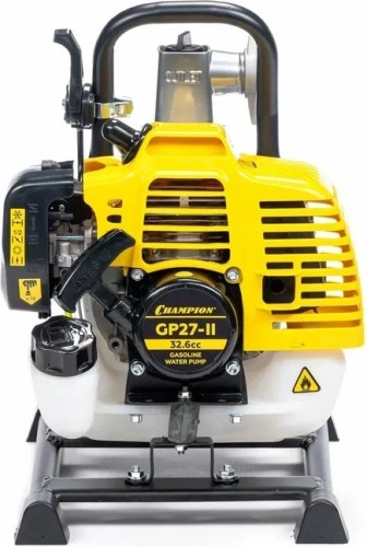 Мотопомпа Champion GP27-II - эффективный помощник для дачи и для загородного дома. С его помощью можно достаточно быстро полить приусадебный участок, сад, газон, парник и иные небольшие территории. Изделие позволяет перекачивать только чистые жидкости. Данная мотопомпа прокачивает воду на расстояние до 30 метров. Для решения бытовых задач этого более чем достаточно. Устройство обеспечивает глубину всасывания воды до 8 метров. Пропускная способность агрегата очень высокая — 130 литров за одну минуту. Мотопомпа Champion GP27-II отличается легкостью в эксплуатации. Для быстрого запуска предусмотрен праймер. Таким агрегатом без труда сможет воспользоваться каждый желающий, в том числе подросток и женщина. В основе данной модели — надежный мотор, который работает на топливной смеси (бензин АИ-92 и моторное масло в пропорции 50 к 1). Предусмотрено хорошее воздушное охлаждение. Данное устройство способно работать без остановки до 10 часов. Мотопомпа Champion GP27-II имеет устойчивую конструкцию. Предусмотрена рама с ножками. На любой поверхности агрегат стоит надежно. Однако здесь важно учесть, что для правильной и продуктивной работы мотопомпы ее следует располагать на ровной поверхности. По размерам и по габаритам изделие небольшое. Это позволяет легко переносить его из одного места в другое. Чтобы произвести техническое обслуживание такого устройства не придется обращаться к специалисту. Здесь вполне можно обойтись своими силами. Данная модель является самой популярной в линейке Champion.