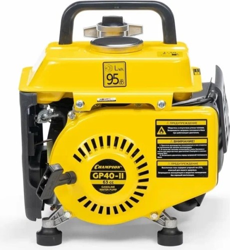 Мотопомпа Champion GP40-II - современное устройство, которое отличается повышенной надежностью и удобством в использовании. Таким агрегатом сможет с комфортом пользоваться человек любой комплекции. Отличный вариант для дачи и для частного дома. Мотопомпу этой модификации можно использовать не только с чистой водой, но и с жидкостью, которая имеет незначительные загрязнения. При работе данный агрегат издает немного шума. Это позволяет использовать его возле дома. Мотопомпа Champion GP40-II отличается от насосных электростанций источником энергии. Такой агрегат работает на бензине, а не от электросети. В данной модели установлен хороший двухтактный мотор. Он отличается длительным сроком службы. Это изделие характеризуется высокими показателями экологичности. В атмосферу уходит очень мало газопылевых выбросов. Бак для топлива достаточно вместительный, что обеспечивает продолжительную работу без дозоправки. Даже в случае опустошения топливного бака корпус изделия отлично удерживает накачанный объем воды. Подобное возможно благодаря надежному обратному клапану. Мотопомпа Champion GP40-II имеет грамотно продуманную конструкцию. Такой агрегат устойчив на любой поверхности. Все благодаря тому, что он имеет особую раму и четыре опорные ножки. Перемещать данную мотопомпу несложно. Для этого в конструкции предусмотрена эргономичная ручка. Она расположена вверху корпуса и имеет хорошее резиновое покрытие. Для изготовления такого устройства были использованы материалы очень высокого качества. Оно прослужит долго и даже в случае интенсивного использования не доставит хлопот.