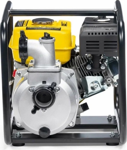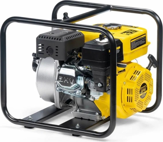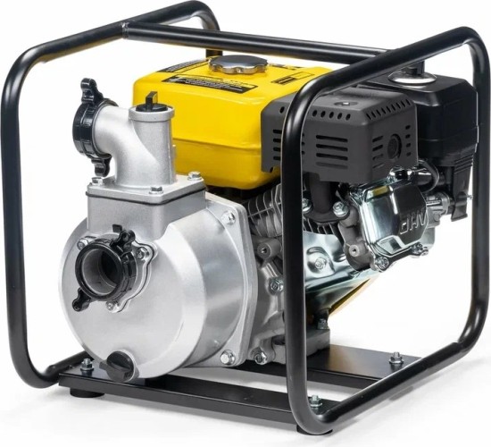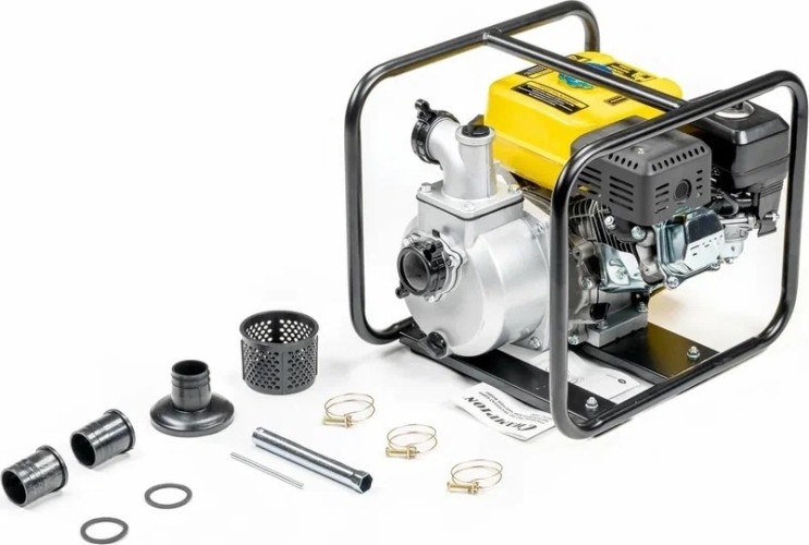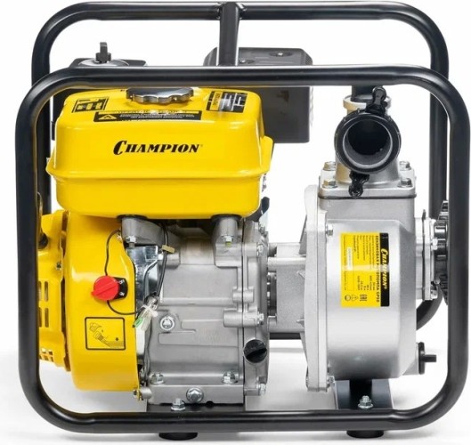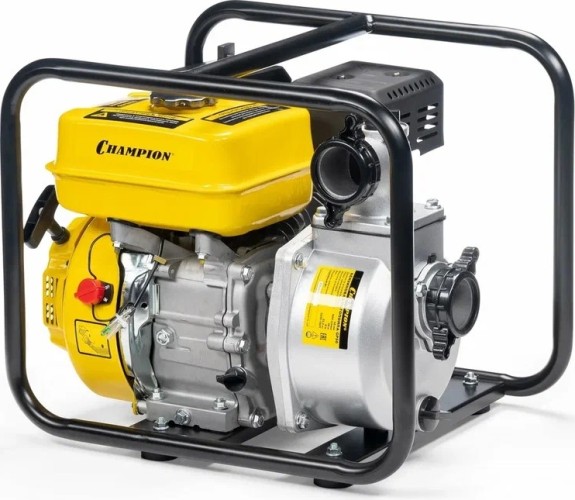Аппарат оснащен четырехтактным бензиновым двигателем Champion с верхним расположением клапанов, что обеспечивает высокую производительность до 600 литров в минуту и максимальный напор до 26 метров. Мотопомпа имеет прочный стальной корпус с антикоррозийным покрытием и эргономичную конструкцию для удобства транспортировки.