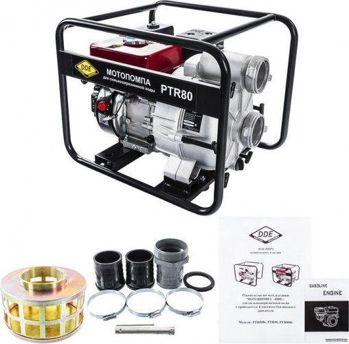 Среди большого обилия инструмента и оборудования, грязевая мотопомпа DDE PTR80 пользуется большим спросом у нефтяников, коммунальщиков, строителей и пожарных. Ведь оборудование легко осушит котлован, пруд или траншею, а если надо, даже поможет в тушении пожара. Для наилучшей производительности, грязевая мотопомпа DDE PTR80 должна оснащаться фирменными рукавами и соединительными муфтами. Данное оборудование относится к классу высокопроизводительного, благодаря показателю в 1080 литров/минуту, а также напору в 26 метров. Самовсасывающая грязевая мотопомпа способна самостоятельно произвести первоначальное заполнение рукавов, нужно только залить воду в корпус устройства. В бензобак помещается до 4 литров горючего, поэтому времени между дозаправками предостаточно.