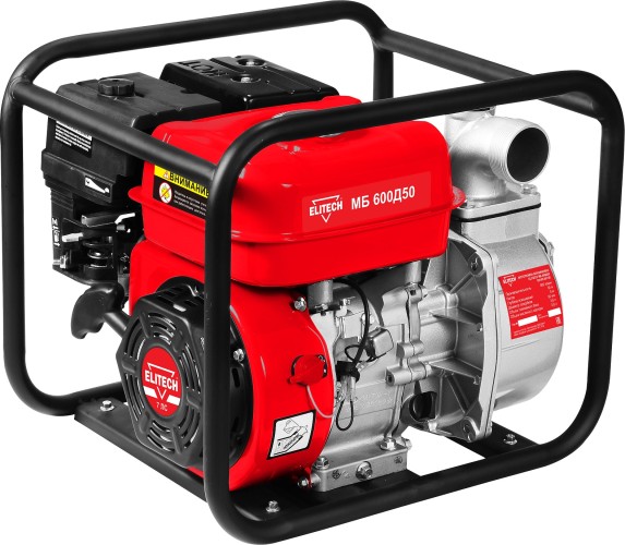 Мотопомпа ELITECH МБ 600 Д 50 с 4х тактным бензиновым двигателем и ручным стартером производительностью 600 л/мин. применяется для перекачивания чистой и слабозагрязненной воды с диаметром частиц до 5 мм. Металлическое рабочее колесо. Максимальный напор до 30 метров.
