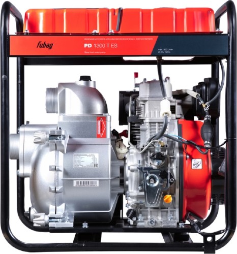Дизельная мотопомпа FUBAG PD 1300T ES для сильнозагрязненной воды - автономно работающее устройство производительностью 1300 л/мин, перекачивает грязную воду с абразивными включениями диаметром до 27 мм. Способна откачивать воду с песком и мелкими камнями. Оснащена дизельными двигателем с воздушным охлаждением , предназначенным для тяжелых условий эксплуатации. Графитовые сальники и специальная усиленная конструкция улиты насоса, изготовленной из термически обработанного чугуна, гарантируют повышенный ресурс работы. Дизельные помпы FUBAG оптимальны для работ в сельском хозяйстве, на строительных площадках, промышленных предприятиях, в коммунальном хозяйстве, при разработке карьеров, шахт, очистки загрязненных водоемов, откачки котлованов, в условиях паводка.
