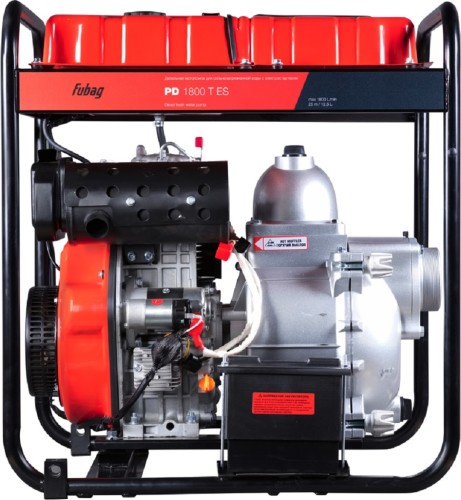 Дизельная мотопомпа FUBAG PD 1800T ES для сильнозагрязненной воды - автономно работающее устройство производительностью 1800 л/мин, перекачивает грязную воду с абразивными включениями диаметром до 27 мм. Способна откачивать воду с песком и мелкими камнями. Оснащена дизельными двигателем с воздушным охлаждением, предназначенным для тяжелых условий эксплуатации. Графитовые сальники и специальная усиленная конструкция улиты насоса, изготовленной из термически обработанного чугуна, гарантируют повышенный ресурс работы. Дизельные помпы FUBAG оптимальны для работ в сельском хозяйстве, на строительных площадках, промышленных предприятиях, в коммунальном хозяйстве, при разработке карьеров, шахт, очистки загрязненных водоемов, откачки котлованов, в условиях паводка.