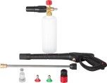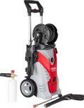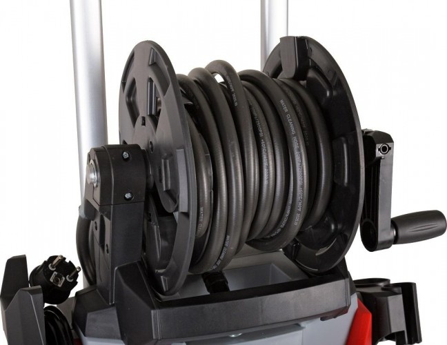 Данная мойка имеет целый ряд преимуществ: высокая мощность и производительность, удобный барабан для шланга, телескопическая рукоятка, профессиональный пеногенератор, 8-метровый шланг высокого давления.