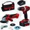 Набор станков Einhell (инструмент) В комплект TE-TK 18/2 Li Kit (CD + AG) входят базовые инструменты, которые всегда под рукой. Мощный набор станков Power X-Change состоит из аккумуляторной дрели /шуруповерта и аккумуляторной угловой шлифовальной машины. Он обеспечивает свободу использования без использования аккумулятора и необходим для выполнения многих задач своими руками в доме, мастерской или гараже. С его помощью можно выполнить множество основных работ. Аккумуляторная дрель-шуруповерт TE-CD 18/40 Li оснащена мощным двигателем и высококачественной 2-ступенчатой металлической коробкой передач. Быстродействующий патрон с одной втулкой оснащен функцией быстрой остановки. Муфта проскальзывания обеспечивает деликатную работу, особенно на низких скоростях и с мягкими материалами.