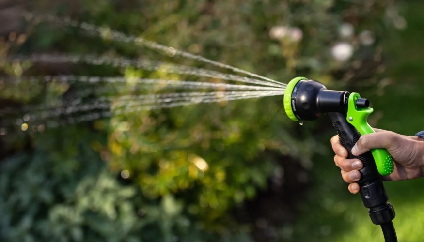 который обеспечивает быстрое переключение интенсивности полива в зависимости от поливаемых растений: слабый напор, максимальный напор, конус, душ, туман, центр, дождь, полив сверху.